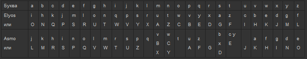 Так же стоит помнить, что некоторые буквы имеют несколько вариантов воспроизведения. Например, Асмодианцу для написания буквы "s" в алфавите Элиосов можно ввести или "b" или "x".